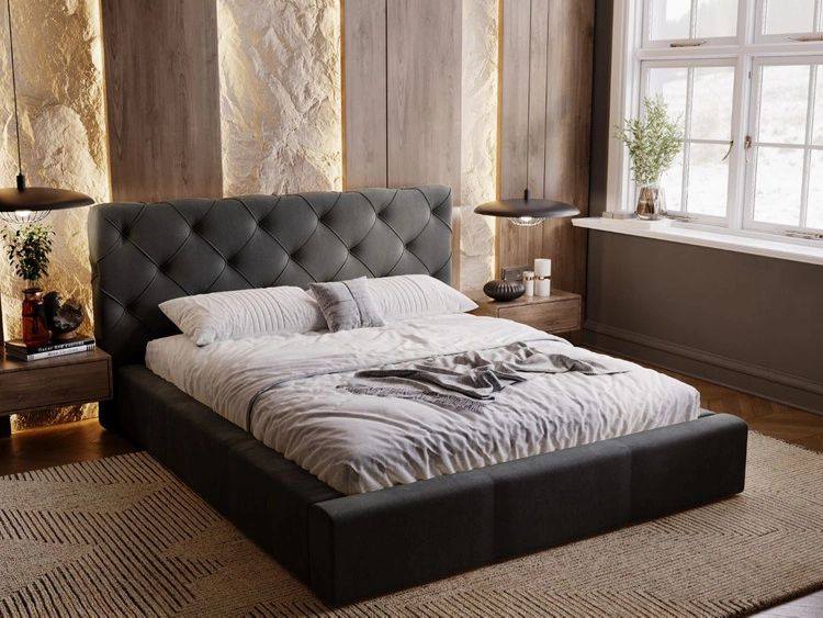 Polsterbett mit Bettkasten und Lattenrost 200x200 Milano Dunkelgrau