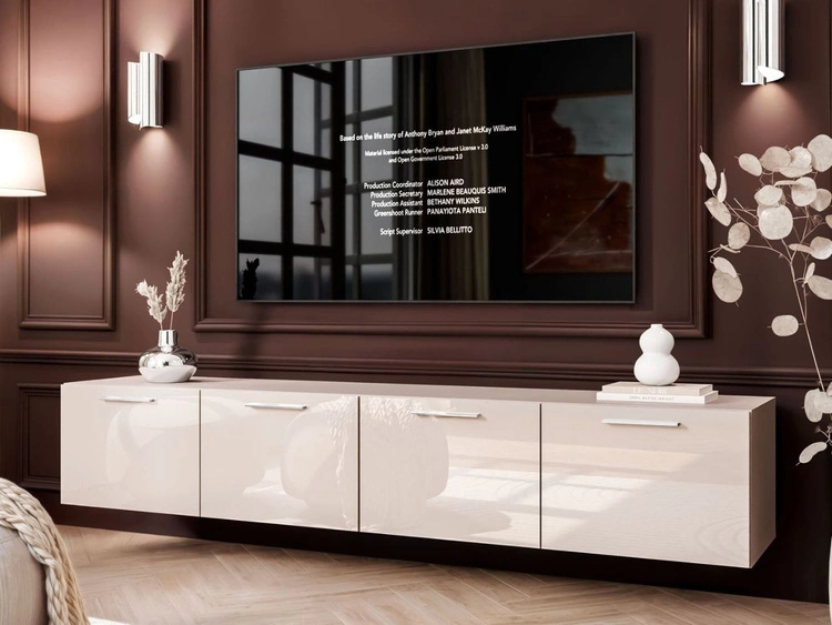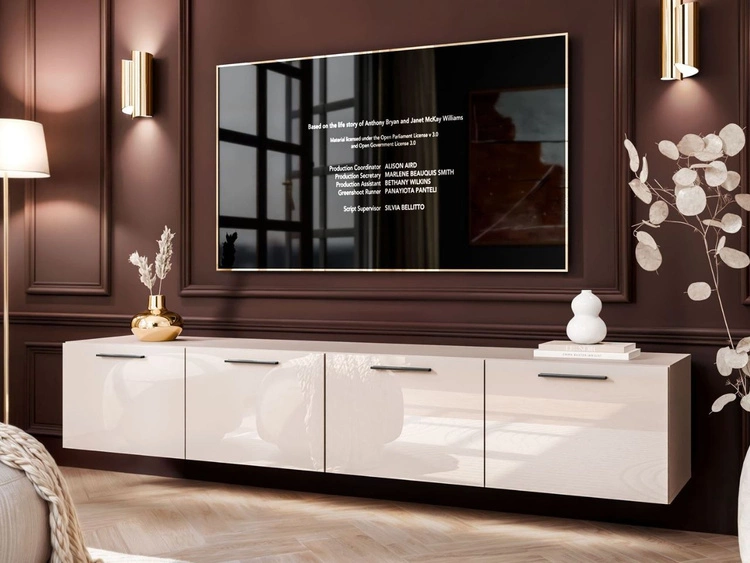 Wohnwand für das Wohnzimmer mit LED-Beleuchtung auf Silbernen Metallbeinen Noaé Kaschmir