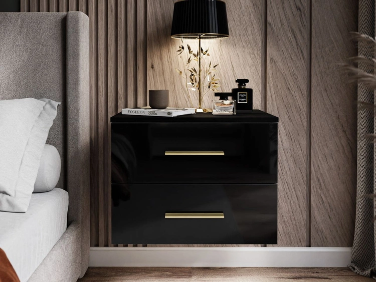 Hängender Nachttisch mit zwei Schubladen Nuveo Schwarz Hochglanz
