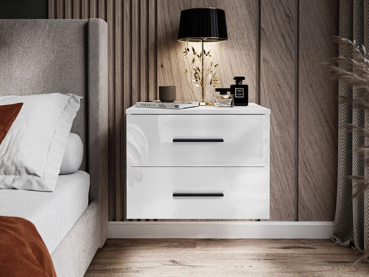Hängender Nachttisch mit zwei Schubladen Nuveo Lux Weiß Hochglanz