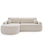 Ecksofa L-Form Links mit Schlaffunktion und Bettkasten Tazones Creme