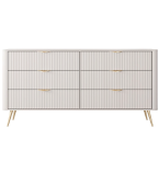 Viertürige Kommode 158 cm Glamour-Stil mit goldenen Griffen und Beinen Lunelie Weißglanz