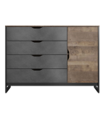 Kommode mit Türen und Schubladen Amber Grau, Schwarz Frame
